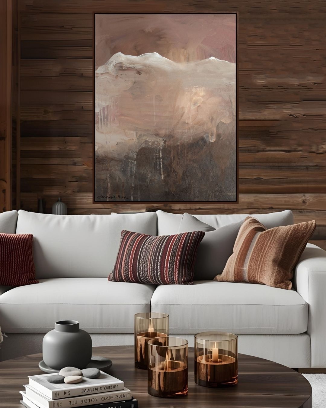 Gi rommet ditt et kunstnerisk løft med dette unike innrammede canvaset fra den norske kunstneren Henriette Roka. Verket, med sine varme jordtoner og abstrakte former, skaper en følelse av ro og mystikk; Perfekt for deg som ønsker et uttrykk som både er moderne og tidløst. Motivet er trykket på canvas og rammet inn med brun svevelist i tre.