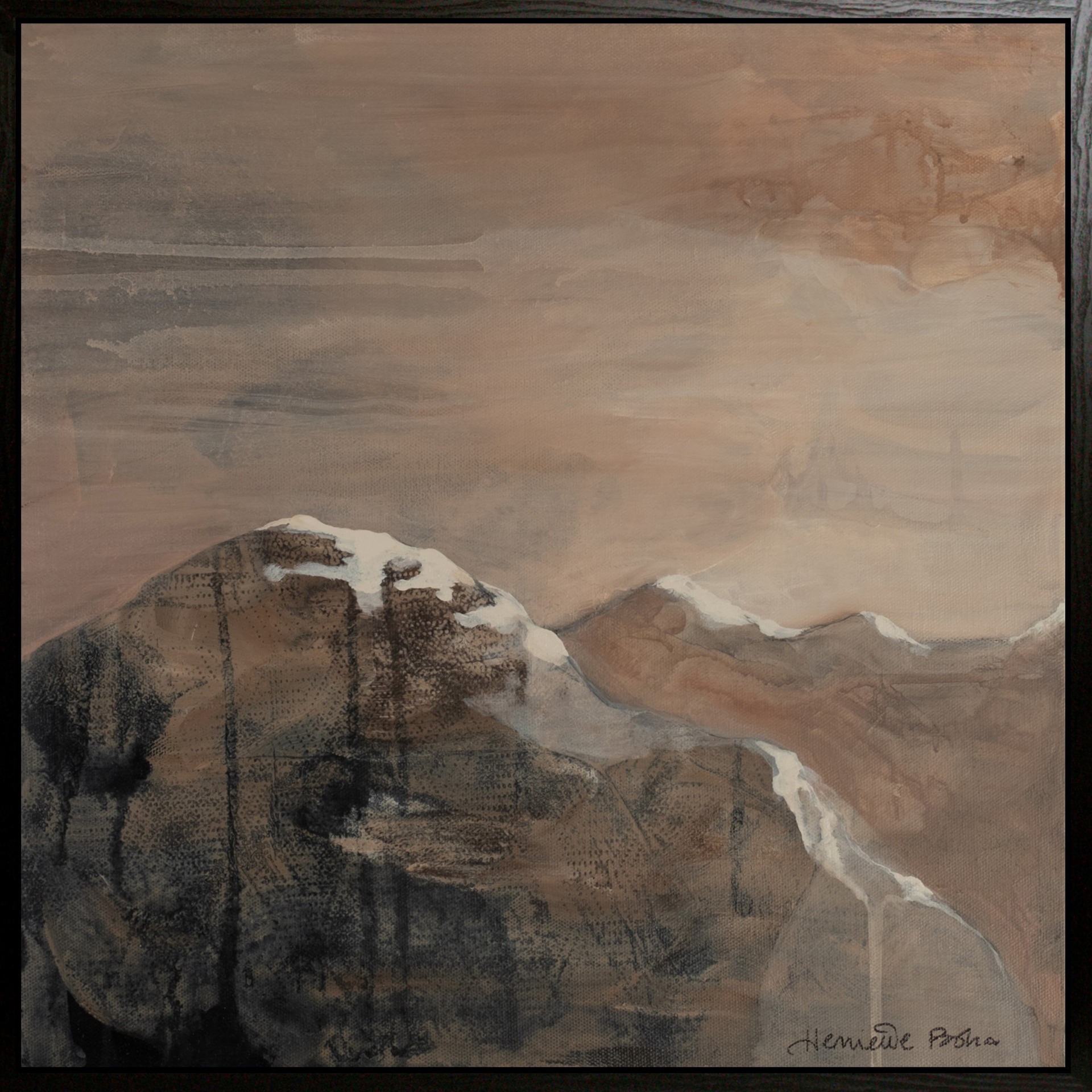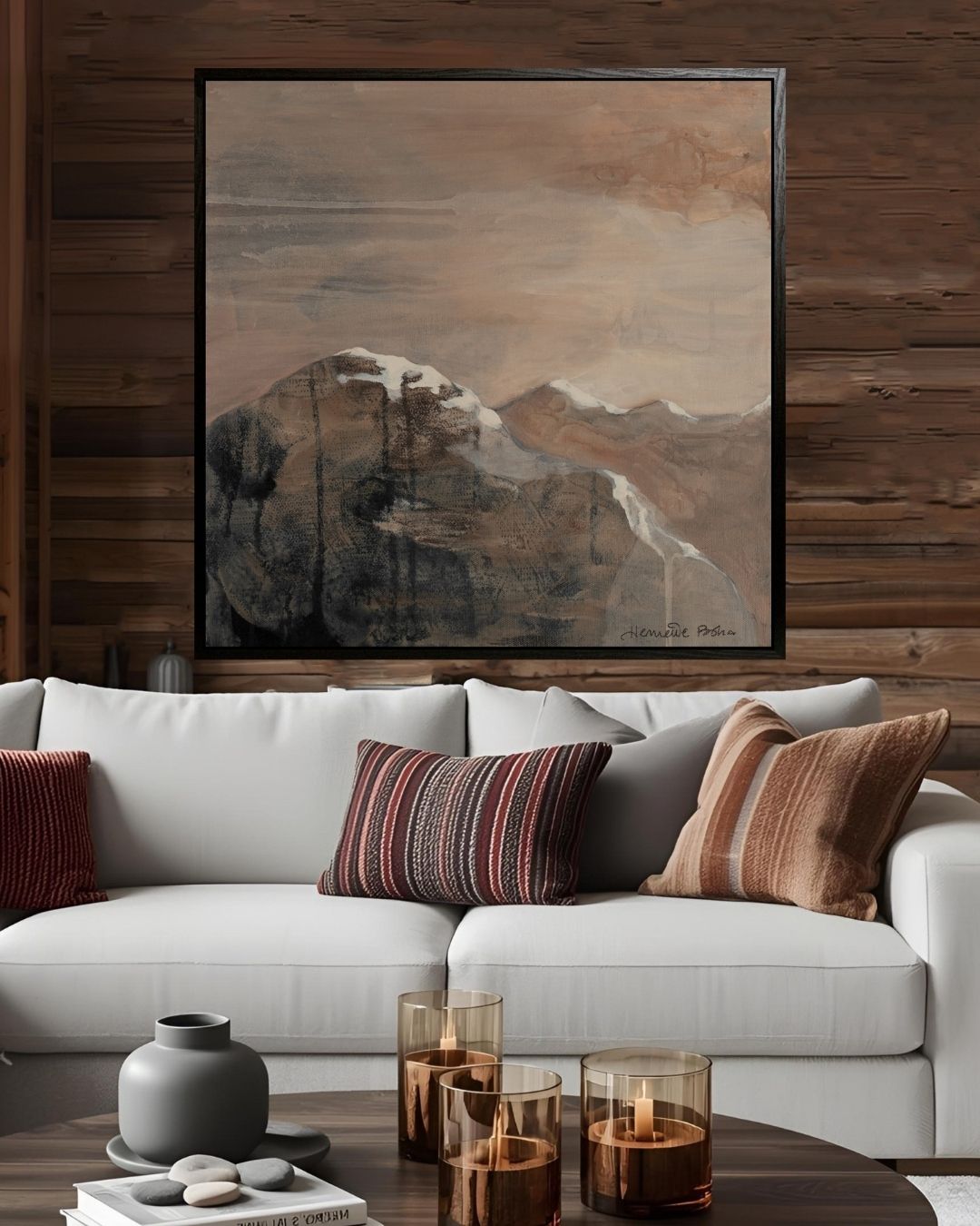 "Go Within" er et varmt og harmonisk kunstverk som inviterer til ro og refleksjon. Henriette Roka har skapt et abstrakt landskap med jordtoner og myke kontraster som passer perfekt til Japandi-stil og nordisk interiør. Motivet er trykket på canvas og rammet inn med sort svevelist i tre