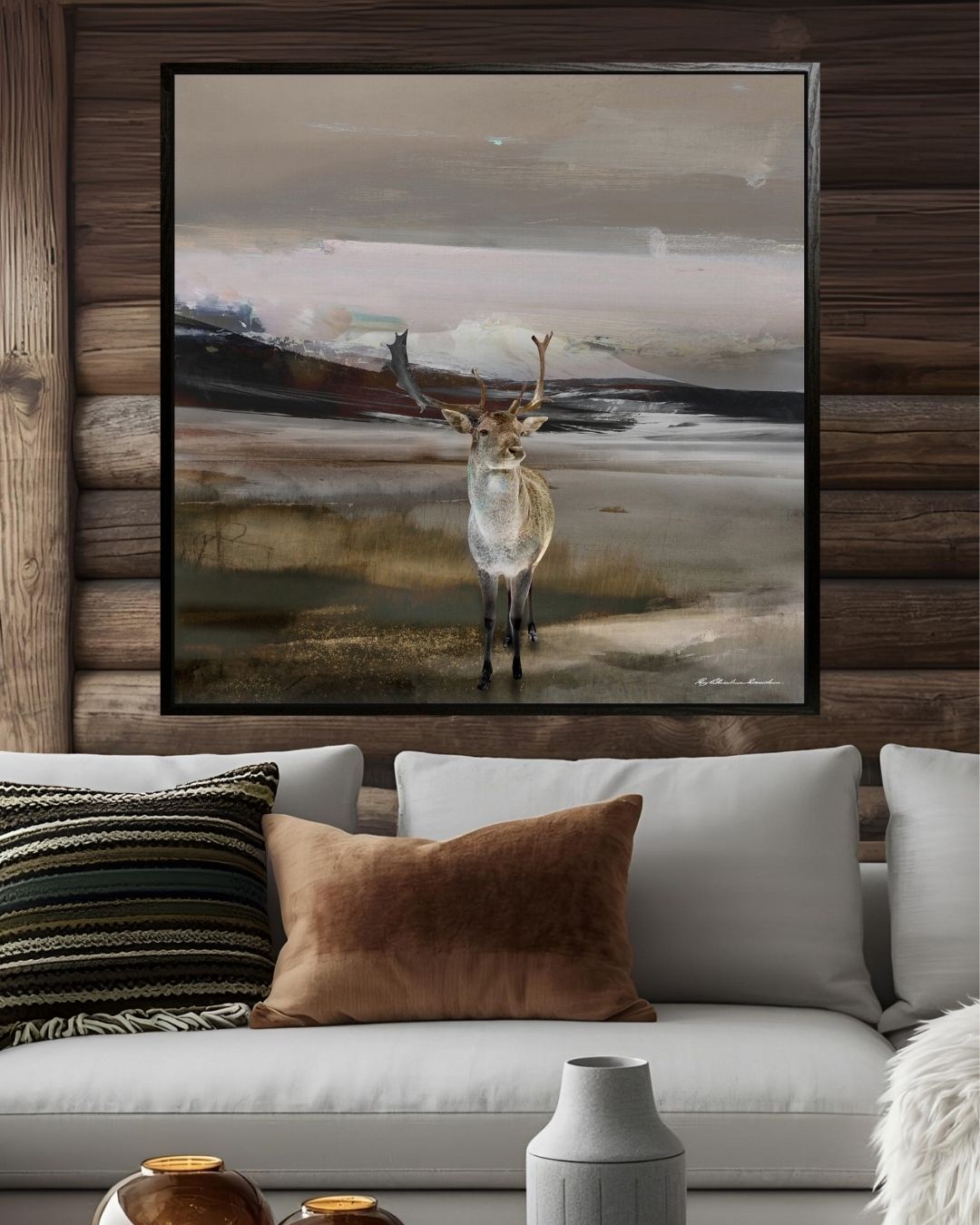 "Vindheim" av Roy Chr Lauritsen er et kraftfullt kunstverk som kombinerer naturens rå skjønnhet med moderne abstraksjon. Med jordtoner, fjellformasjoner og subtile kontraster gir maleriet en følelse av ro og styrke; Perfekt for nordisk interiør og hytteatmosfære. Motivet er trykket på canvas og rammet inn med sort svevelist.